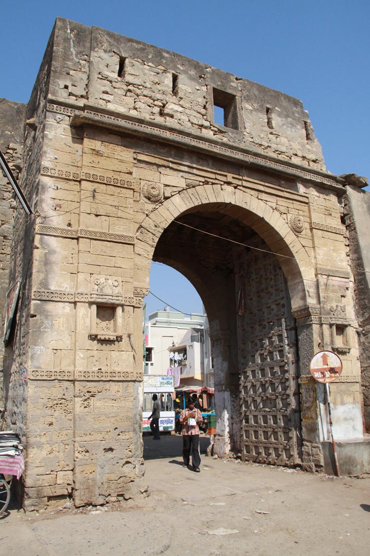 The Mahadev temple has memorials to famous Mundra sailors, including some who advised the Sultan of Zanzibar and guided Vasco da Gama to India. Darya Pir, the patron saint of Kutchi fisherpeople, arrived here from Bukhara (now in Uzbekistan) in 1660. He was well-loved by the locals, introduced them to Islam, and they built the shrine that bears his name here when he died; this site still receives visitors of many religious backgrounds seeking blessings. The Mughal Emperor built a gate in his honor, which still stands and is known today as the Mughal Gate. Interestingly, the walls of the old city fortifications have a religious origin, as they were dragged from the ruins of the Jain city of Bhadreshwar.